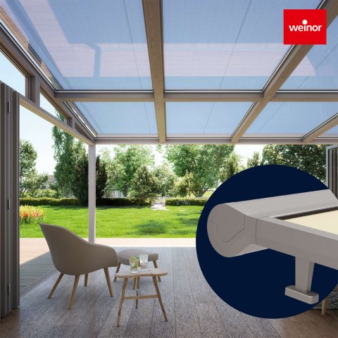 Aufgesetzte Wintergartenmarkisen - diese werden auf das Dach aufgesetzt und bieten einen zuverlässigen Sonnen- und Blendschutz. Dadurch heizt sich der Raum unter dem Terrassen- oder Wintergartendach weniger stark auf.